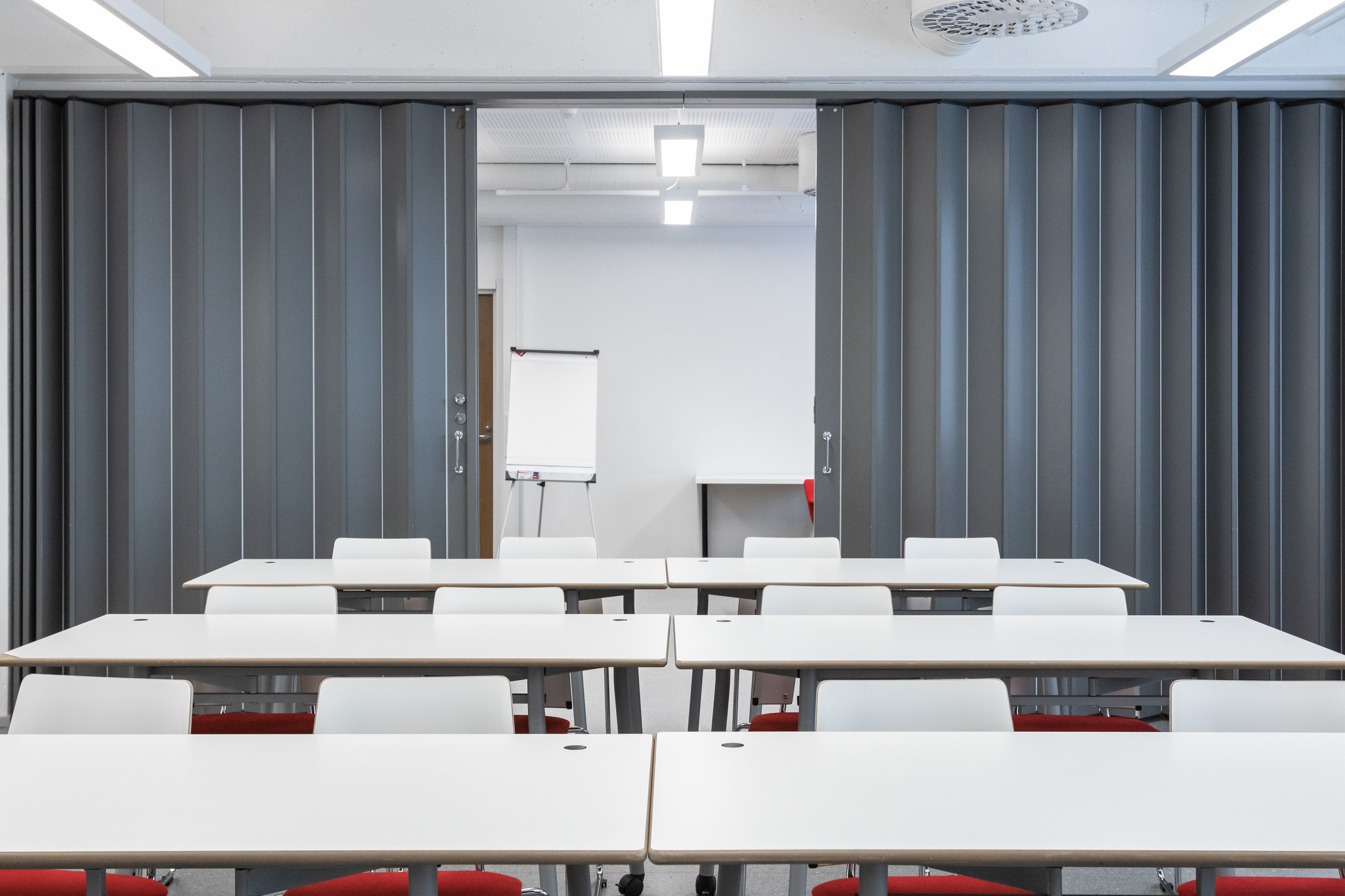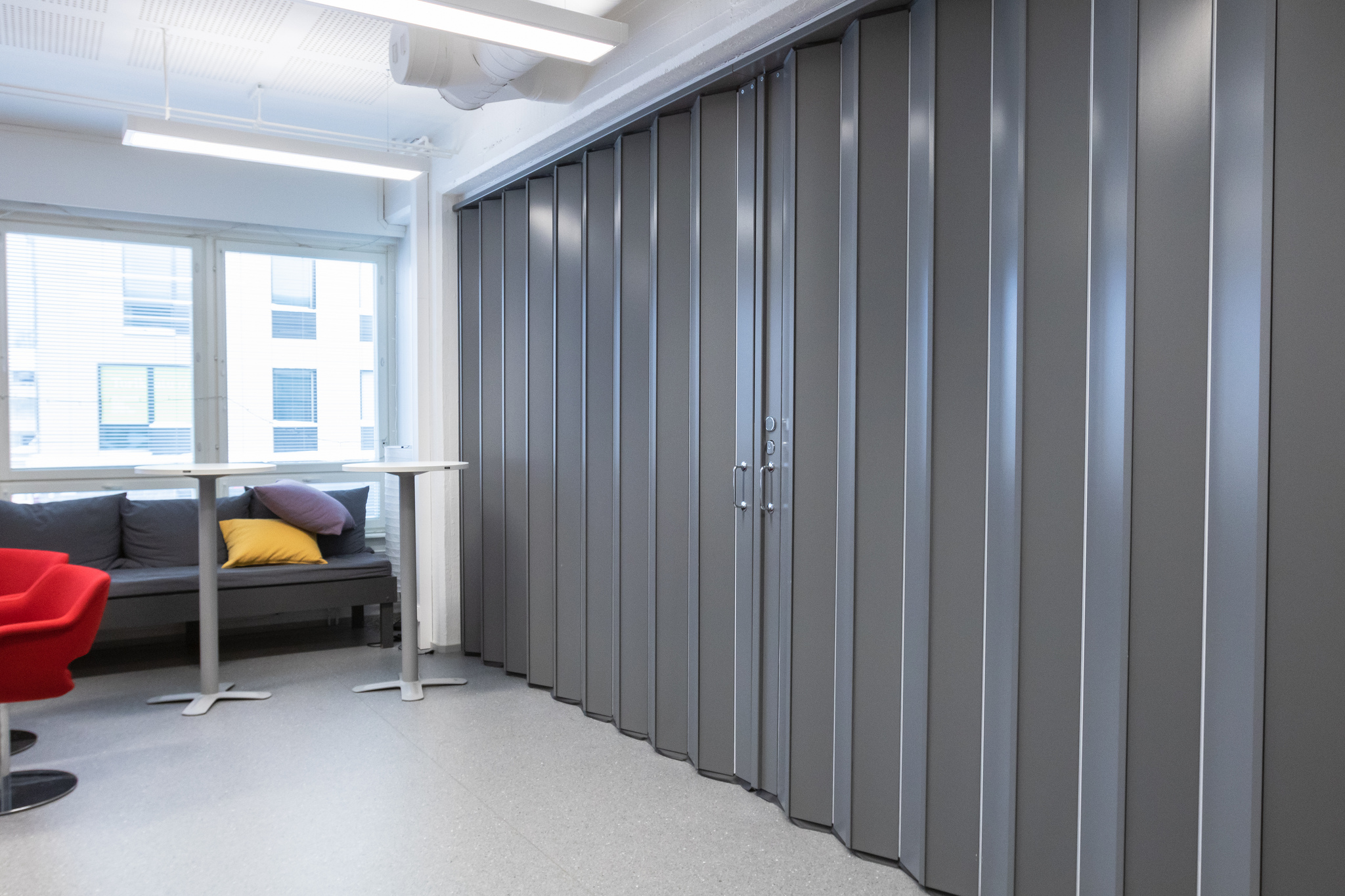 Oven lisäksi, taiteovi toimii myös kätevänä tilanjakajana, joka sulautuu hyvin seinän jatkeeksi. Se myös parantaa tilojen muunneltavuutta ja luo tyyliä tiloihin.