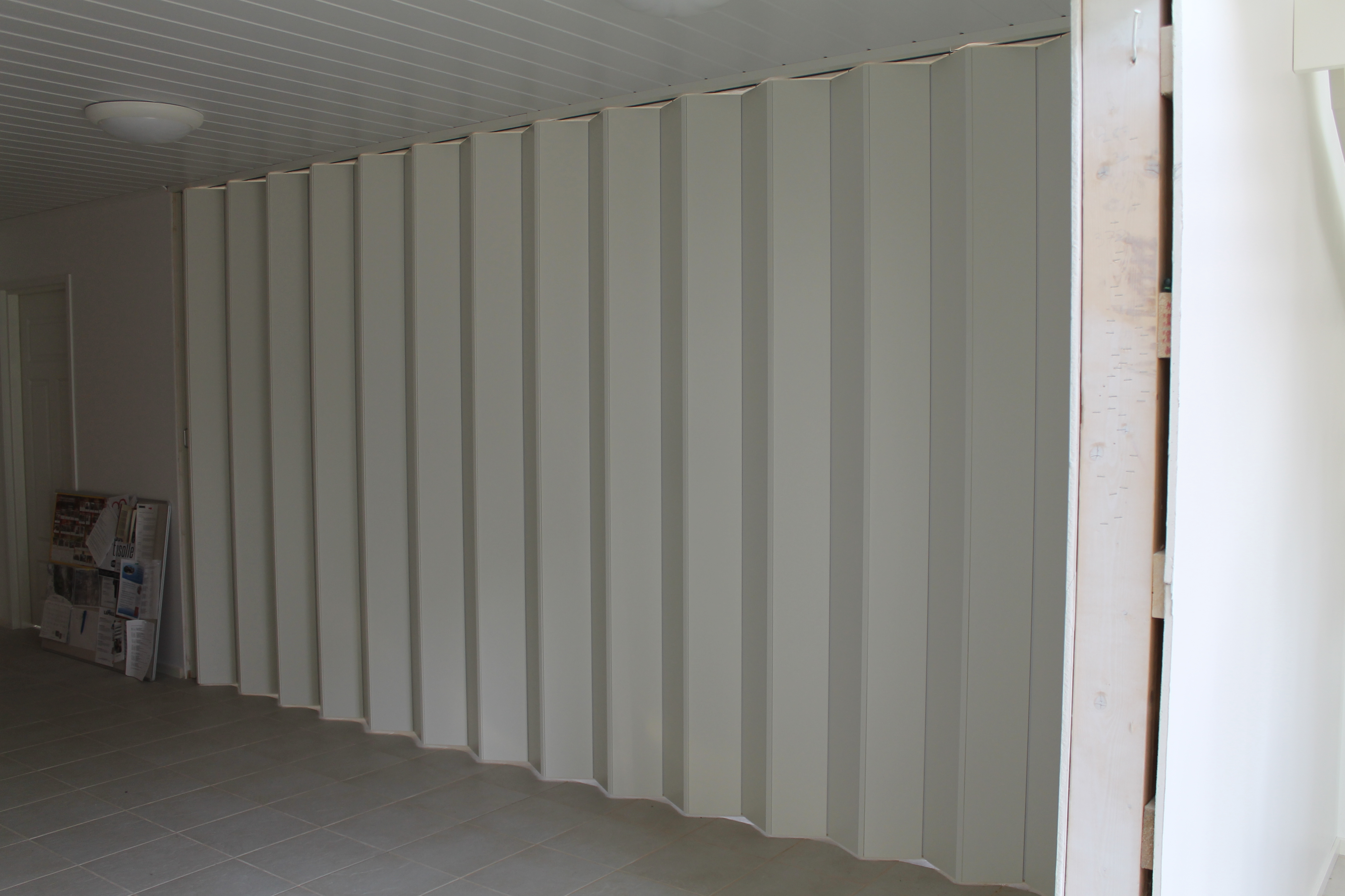 - Saranaprofiili lamellin värinen pvc, jossa lamellin väriset puiset saranan peitelistat