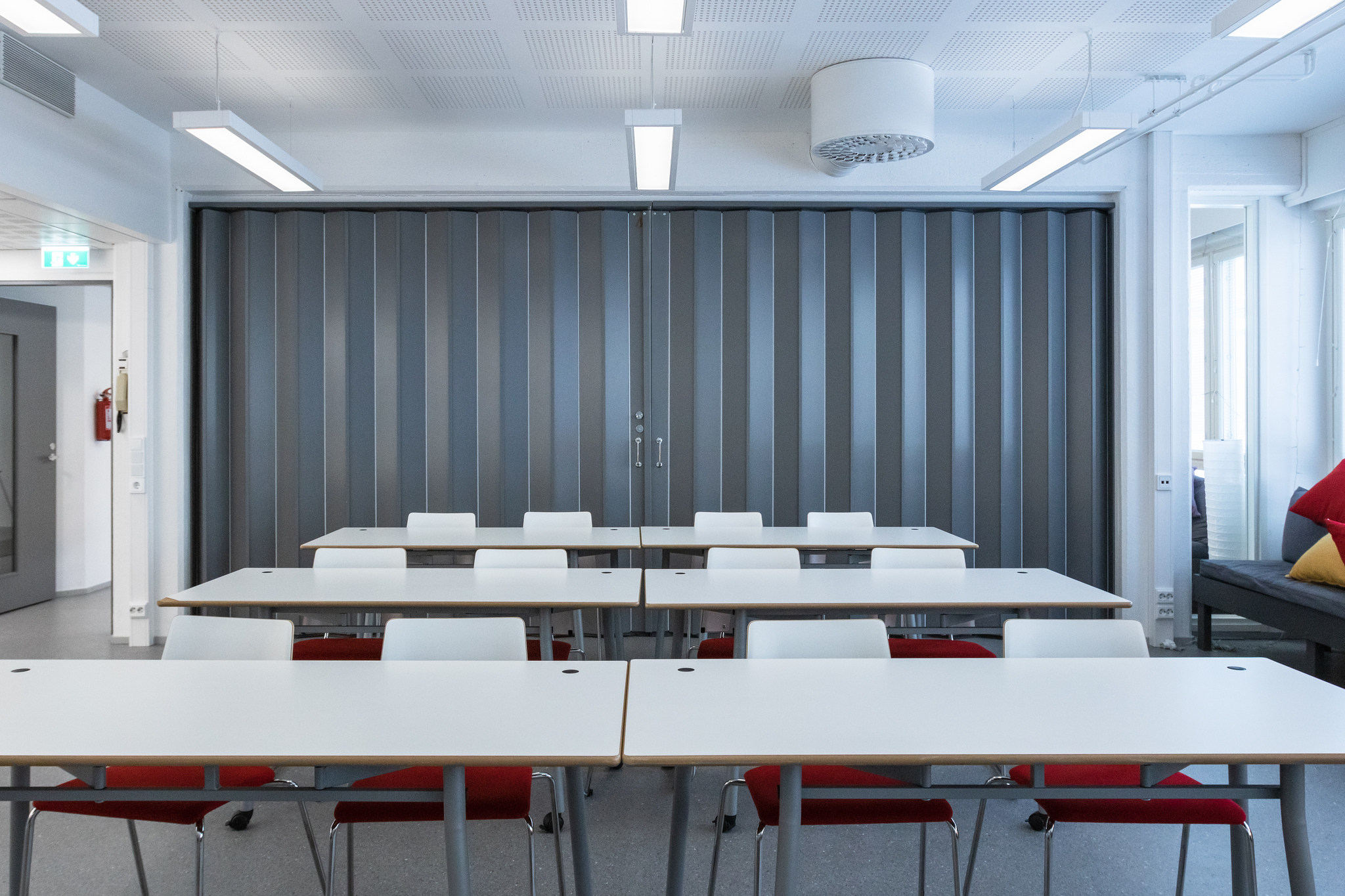 Oven lisäksi, taiteovi toimii myös kätevänä tilanjakajana, joka sulautuu hyvin seinän jatkeeksi. Se myös parantaa tilojen muunneltavuutta ja luo tyyliä tiloihin.
